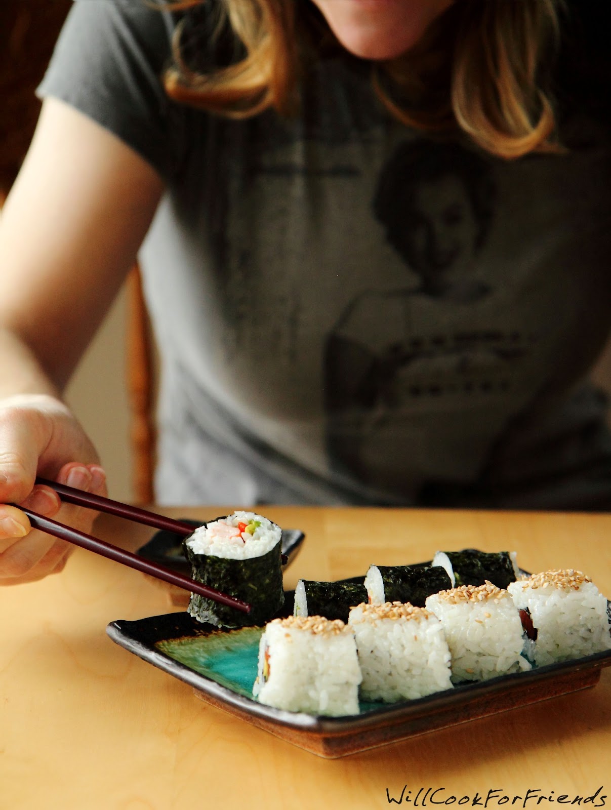 I’ve made sushi once before with friends, and have always meant to make it myself… but since those friends have moved away, and I don’t know many people who enjoy sushi, it’s never been something I’ve been willing to do all by my lonesome. With all the tools I need on hand, though, I no longer have any excuses!