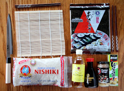 - A bamboo sushi mat, called a Makisu (or a bamboo place mat would probably work, as well)