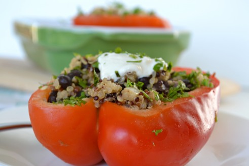 Cara of Fork and Beans made these Stuffed Bell Peppers, with quinoa, beans, and a pinch of warm southwest flavors. Quick, delicious, and satisfying!