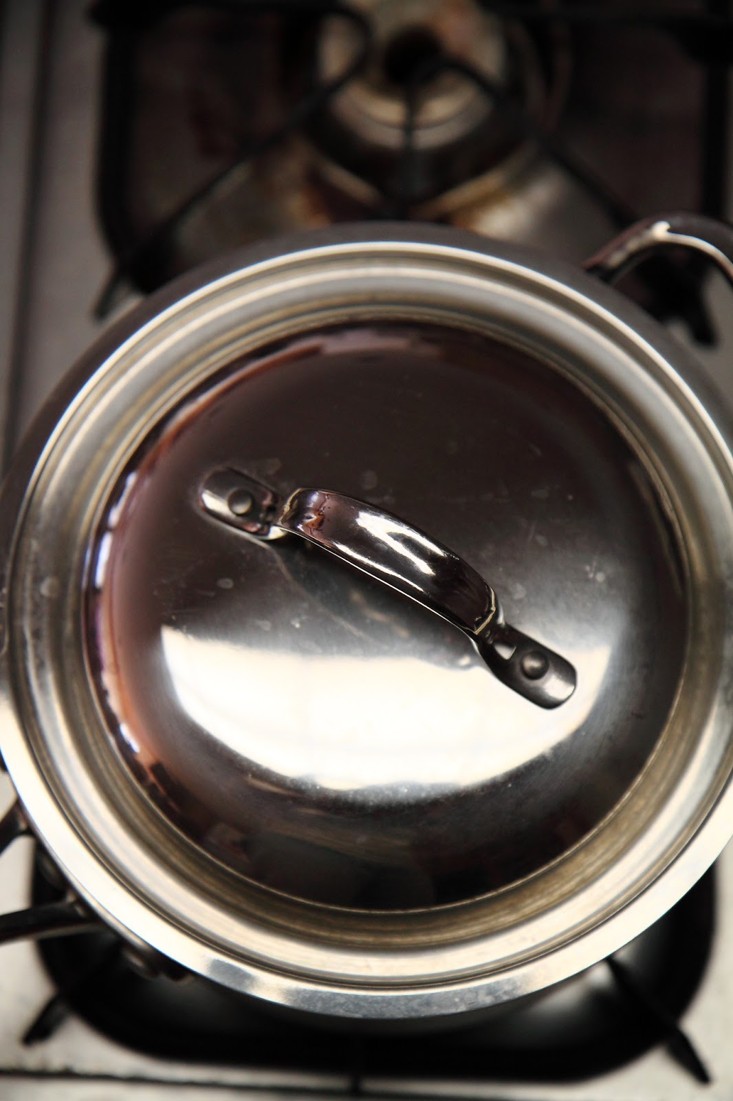 2. Place the pot over medium-high heat, and bring the water to a boil, just like with the white rice. Do not stir! Let the rice cook, uncovered, until small craters form on the surface. Watch for the water to boil off enough that it goes just below the level of rice in the pot. Again, do not stir or you’ll miss these signs!