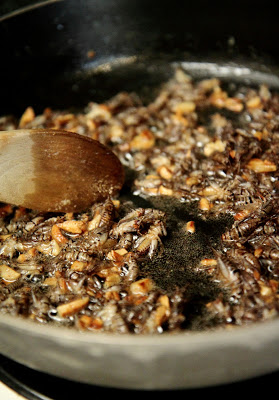 Oooh, I had a big plateful of jumbo-sized crickets (stir-fried in garlic and just a bit of oil) when I was in Mexico. So good! It really is a shame that we Americans are so weird about eating bugs; I think they’d be a great thing to eat sometimes.