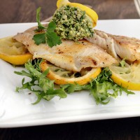 Tilapia with Arugula Walnut Pesto and Lemon – seafood simplicity